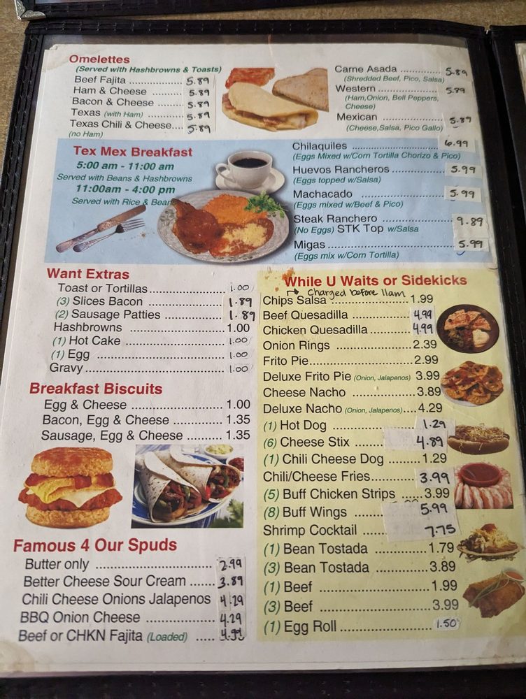 “ My Yelp friends helped me out in a pinch. We had intended to visit another spot for breakfast and they had a two hour wait (no can do). So I trusted yelp to find us breakfast in the area . I called they said "no wait" Glad we had a chance to eat here. Not only is this place super easy on the budget , but the food was very good too. I've never had free chips and salsa with breakfast but it was a welcome surprise because we were hungry. Fairly quick service . The only thing is this is not a new pristine building. So if that's really important, this might not be for you. But if you like cheap breakfast that tasty, you can't go wrong ! . ”